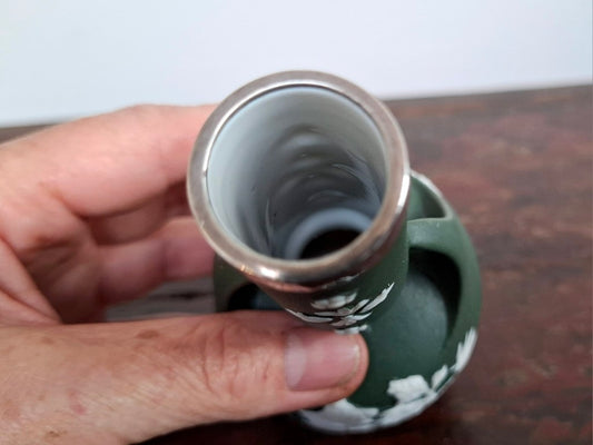 Rare Antique Edwardian Jasperware Vase with Sterling Silver Rim