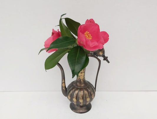 Mother of Pearl Inlaid Brass Salt & Pepper Shakers with Tray