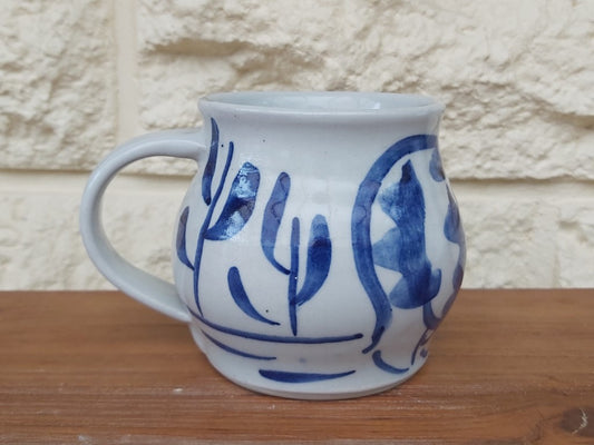 Unique Blue & White Ram Studio Pottery Mug