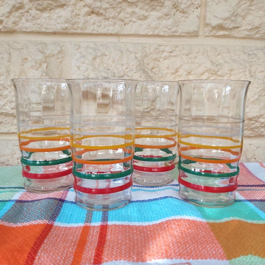 Set of Vintage MCM Ribbed & Striped Drinking Glasses