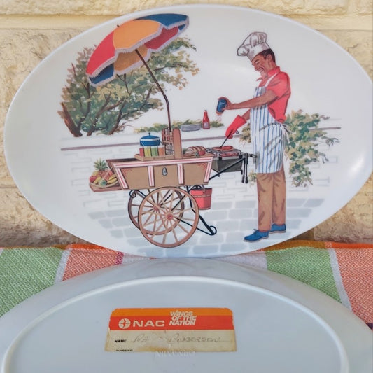 Pair of Vintage Oval BBQ Themed Ornamin Melamine Plates