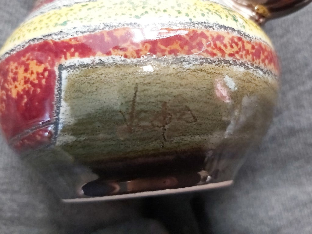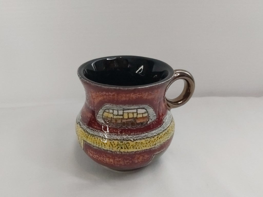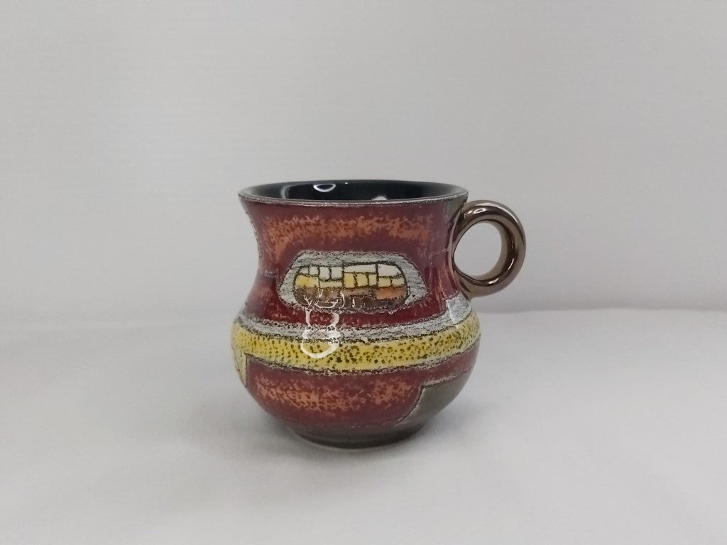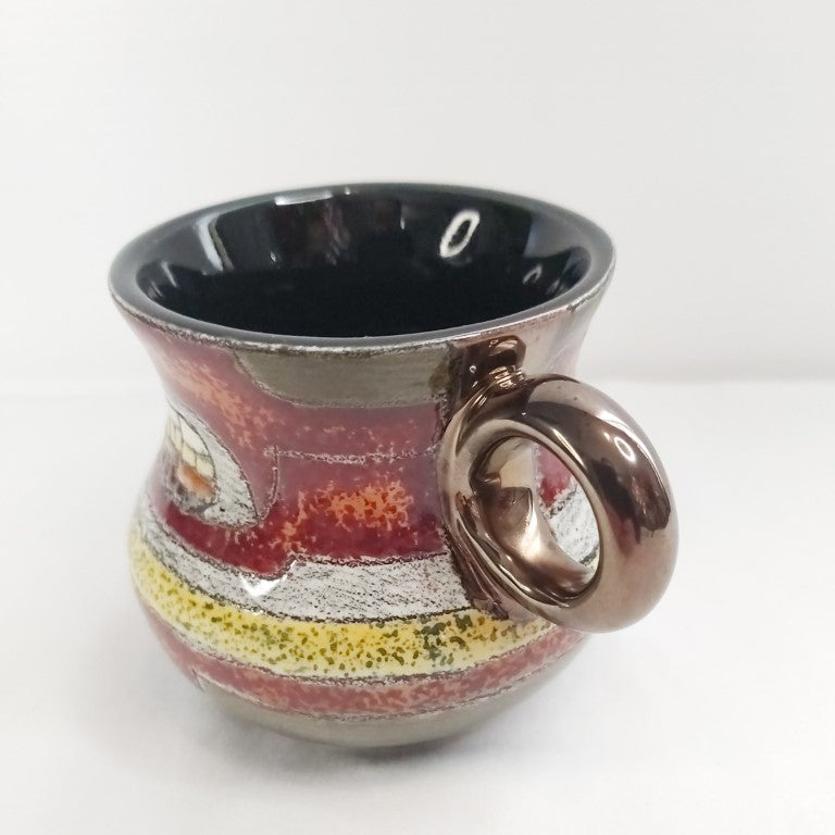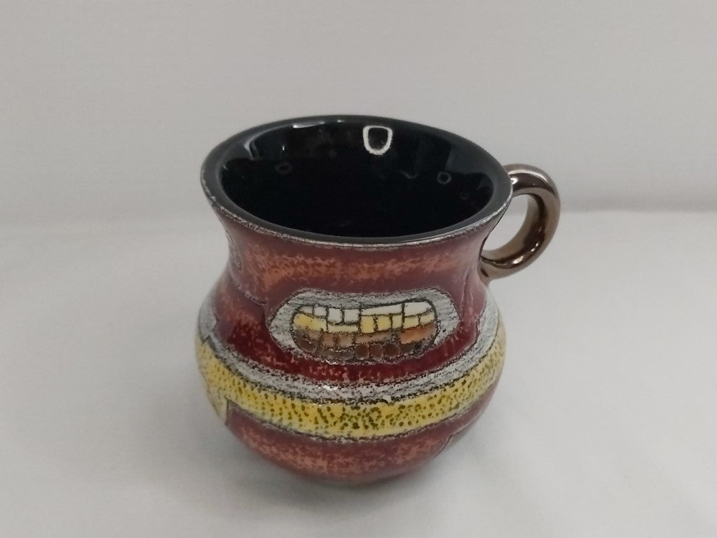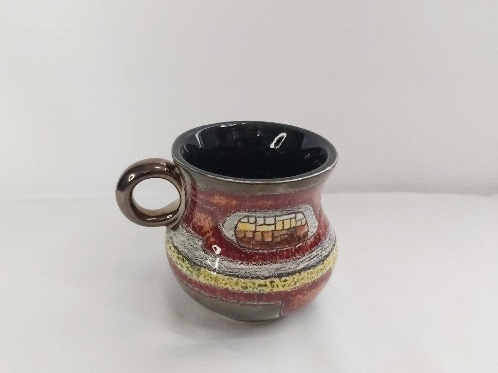 Elevate your morning coffee routine with this MCM style Eduardo Vega ceramic mug. This stunning mug, featuring unique designs from renowned artist Eduardo Vega, is in excellent condition with no chips or cracks. Experience the fusion of art and functionality in every sip.
