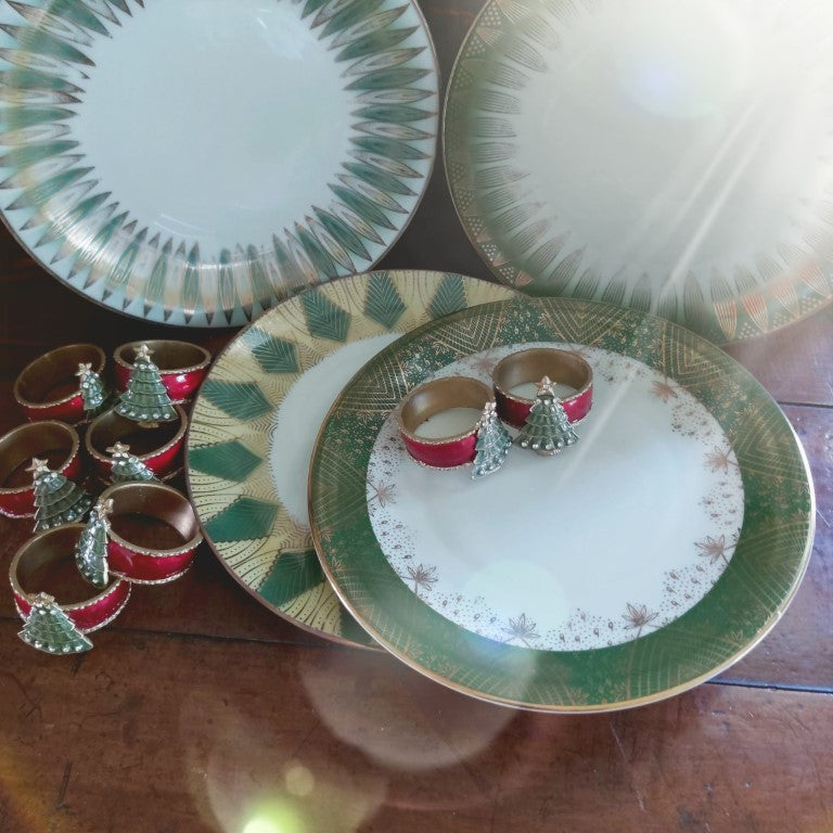 Enamelled Christmas Tree Napkin Holders Set of 8
