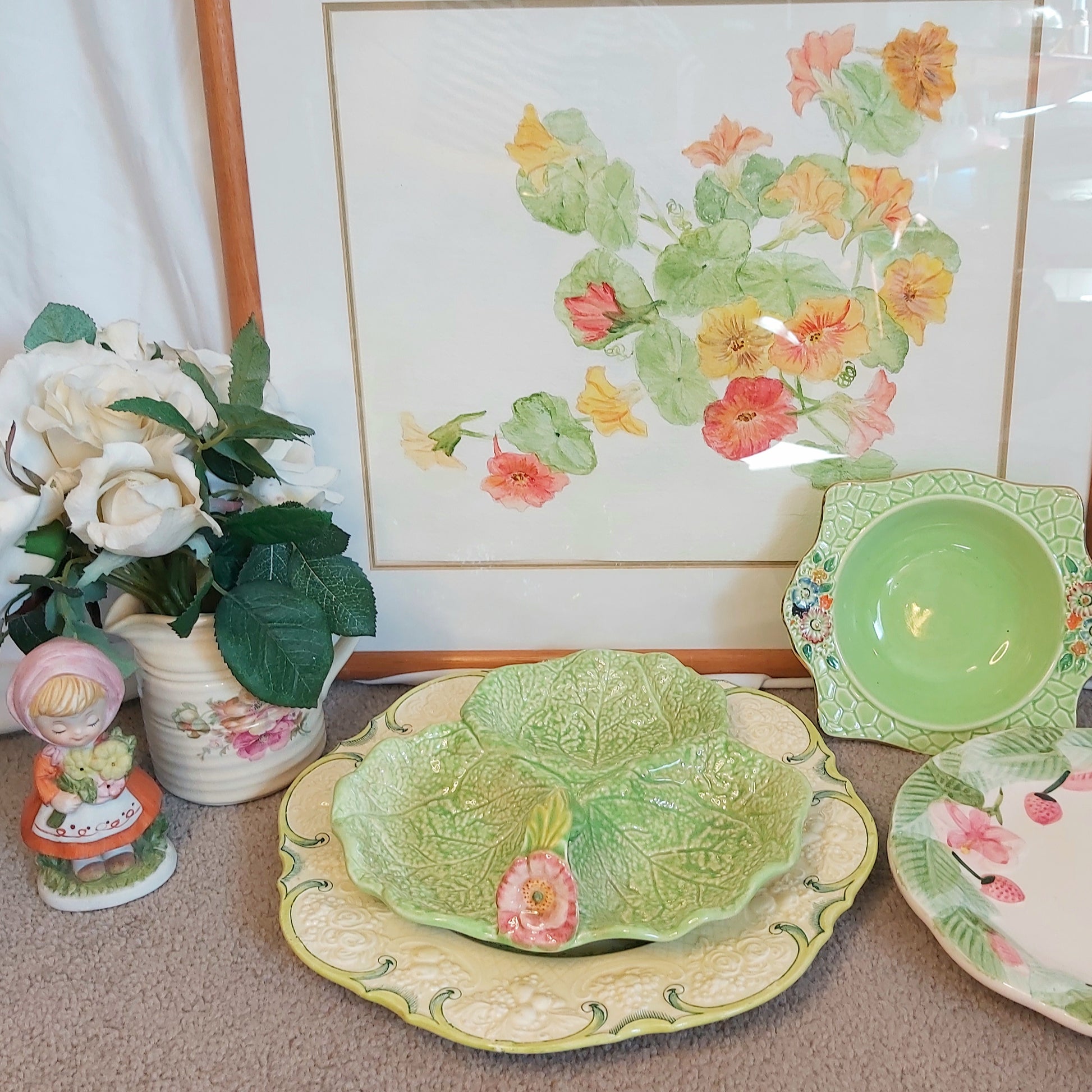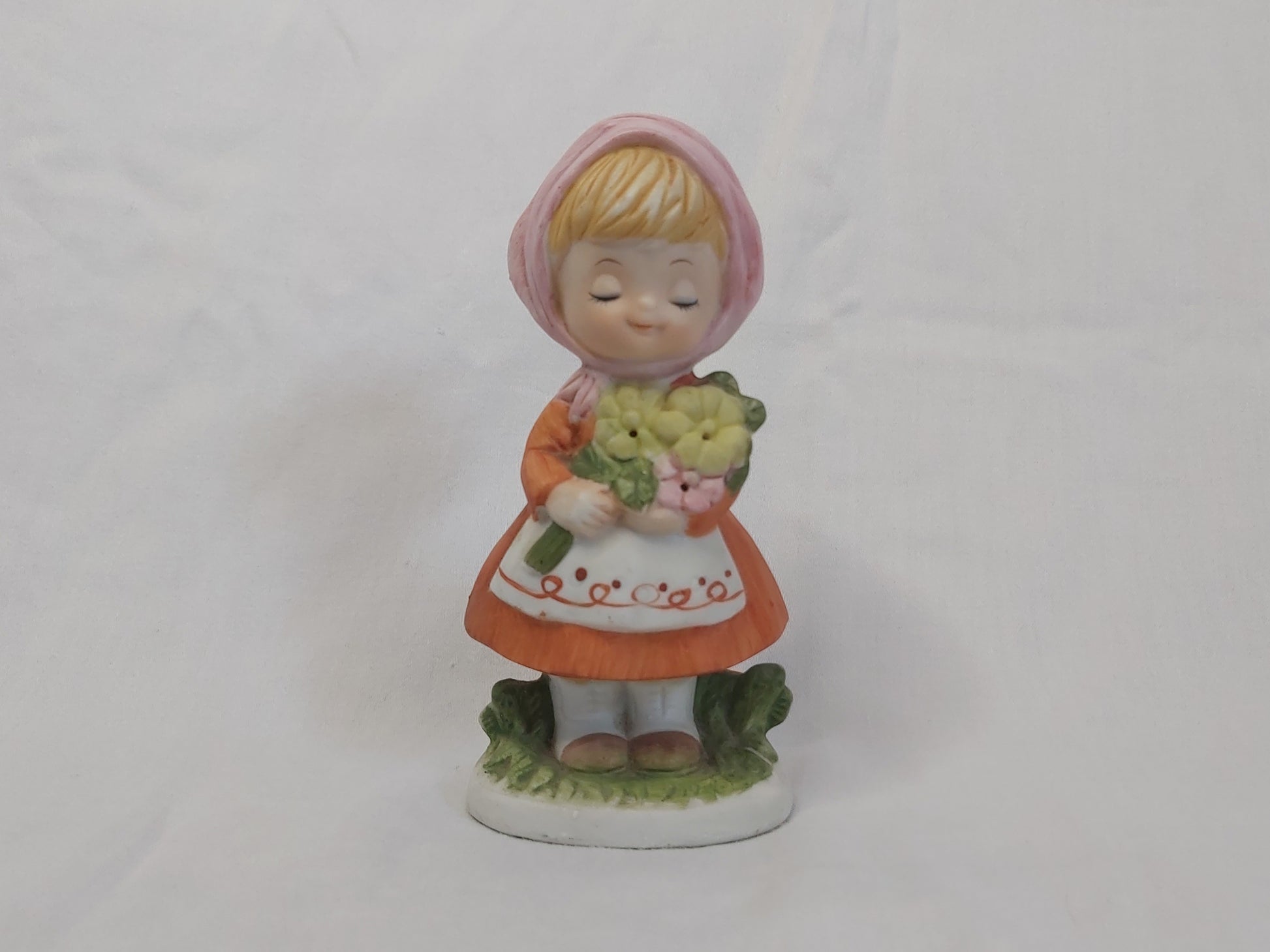 Vintage Little Girl Holding Flowers Figurine