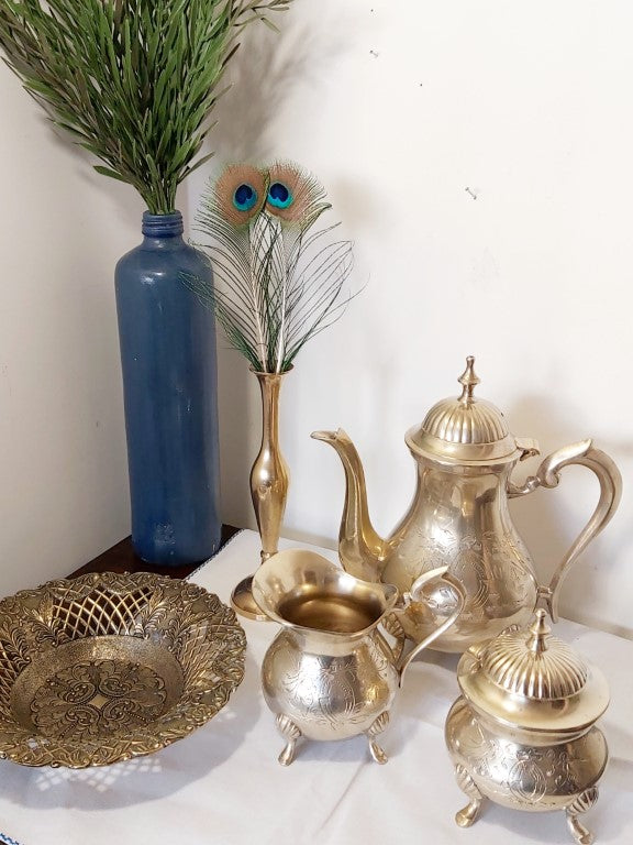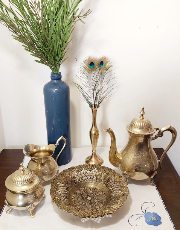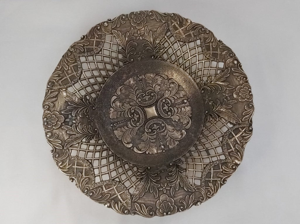 Marked with Made in Italy and C.T.1 on the back, this solid cast brass bowl is ornate with lattice detail as well as Leaves, flowers & embossed. In great condition with some beautiful patina.