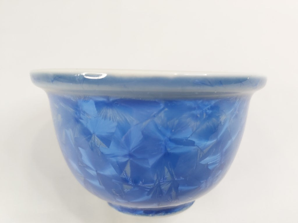 This cute bowl features a unique Japanese Blue Crystalline Glaze, making it perfect for displaying small trinkets, dipping sauces or serving nibbles. A beautiful addition to any home or kitchen. No chips or cracks