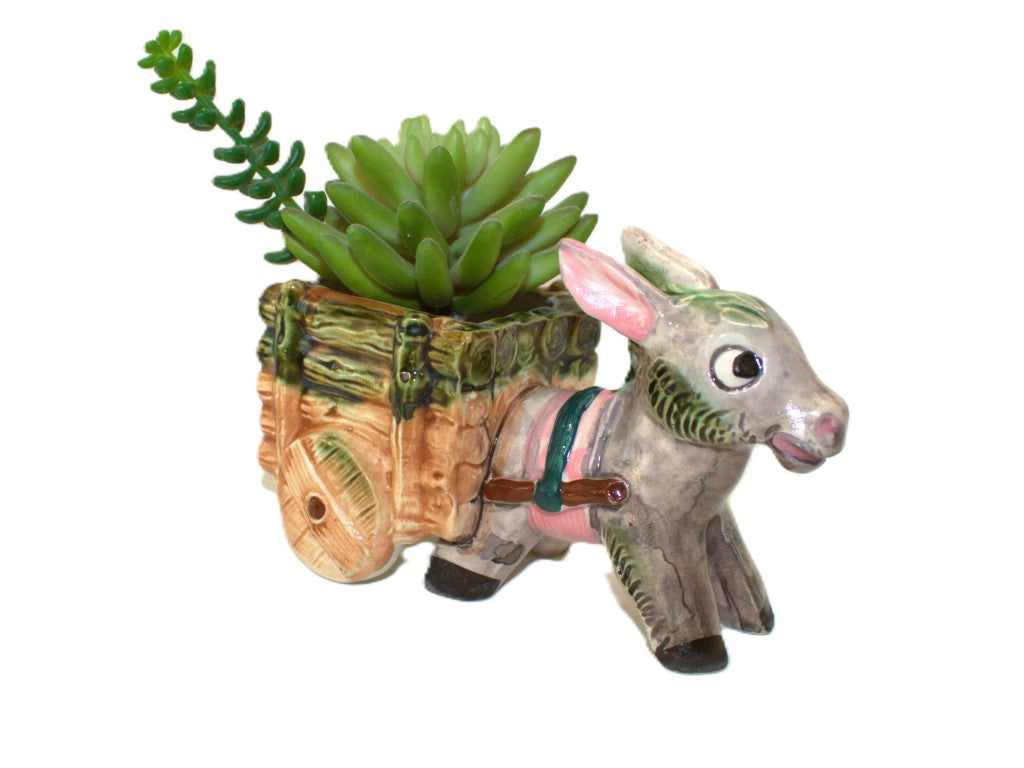 Kitsch Vintage Ceramic Donkey Cart Planter