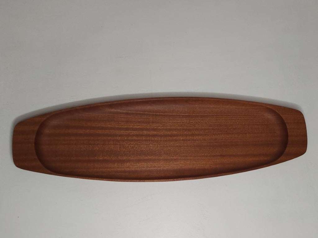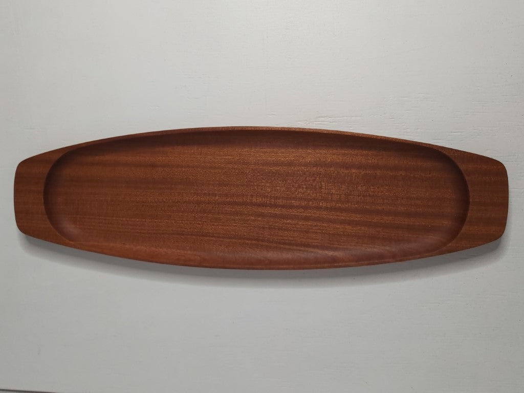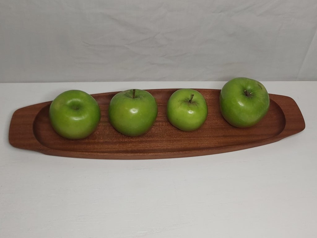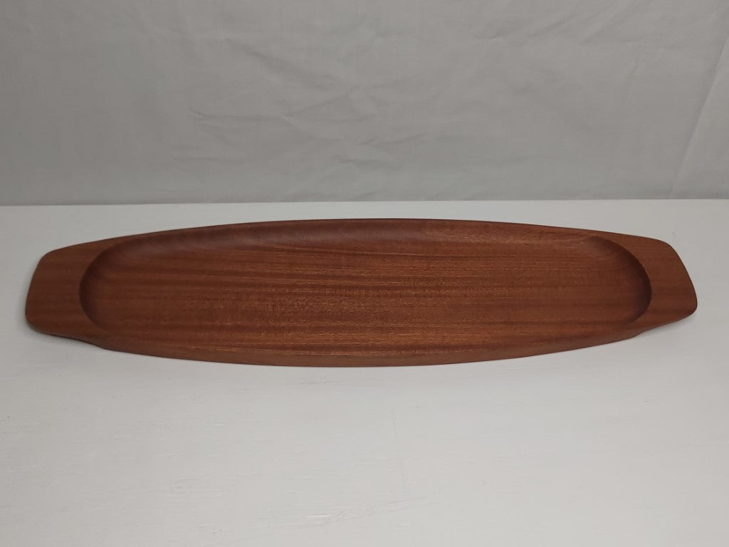 The closest I could find to this shape online was the Wiggers Denmark Teak tray from the 1960's. However they are different sizes, so I'm not 100% sure. If you have any info, please let me know as I am keen to learn more. In great vintage condition with just a very minor chip in one handle. Mid century teak