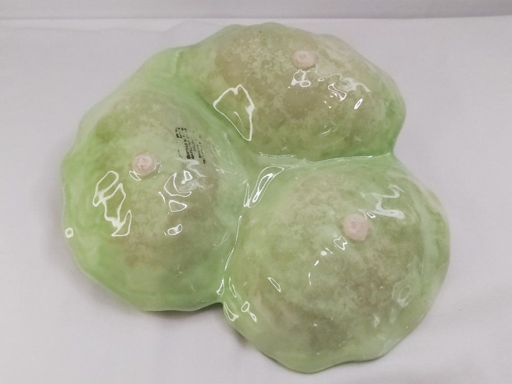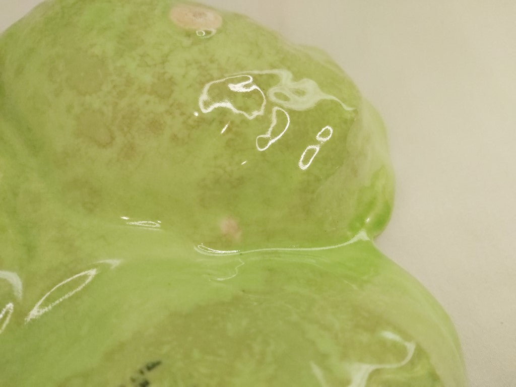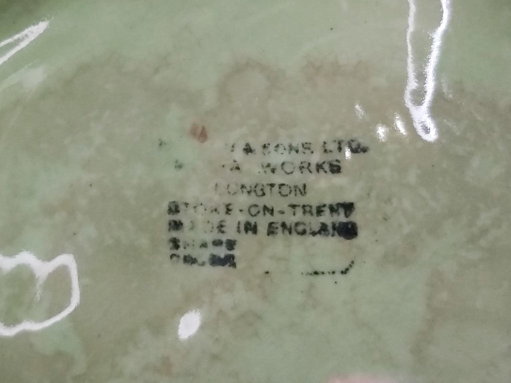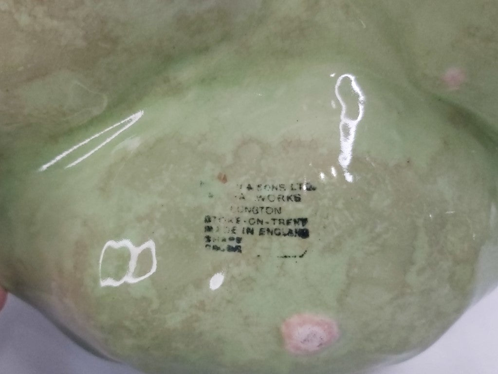 Made in Stoke on Trent, this fresh green 3 part serving dish is useful and pretty! It's in good condition with no chips or cracks, with just some typical crazing and discolouration, mostly on the underside, as expected for the age. Please refer to the photos. This piece would suit decorative use, it could be hung on a gallery wall or placed as an art piece on a shelf.