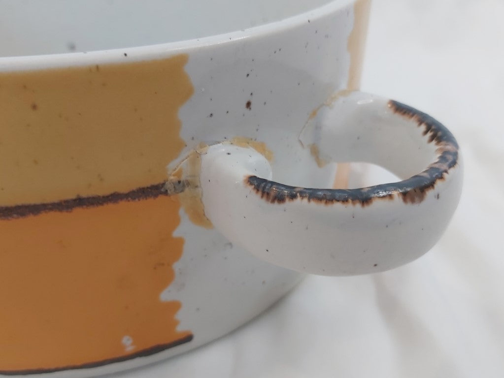 Add some retro charm to your kitchen with the Midwinter Stonehenge Sun Open Casserole Dish. Made of yellow two tone stoneware, this dish is perfect for serving up your favorite dishes with a touch of vintage style. Perfect for any gathering or a cozy night in. There is a repair to one of the handles (see photos) but otherwise in great condition with no chips or cracks! This is a highly collectable range and in mint condition sells for around $80!