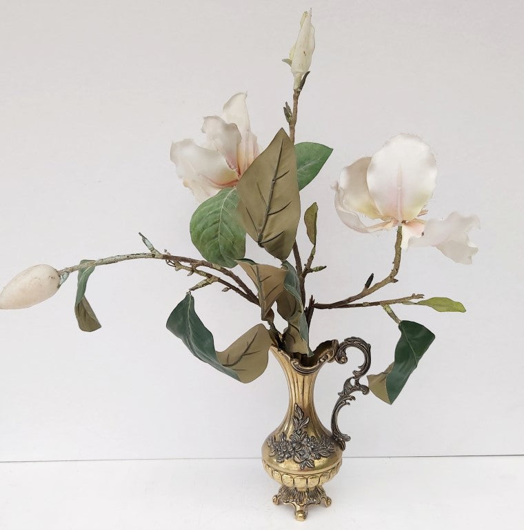 Add a touch of ornate elegance to your home with this Italian Brass Pitcher. Its embossed design and vintage charm make it the perfect statement piece. Use it as a pitcher or vase for a versatile and stylish addition to any room.