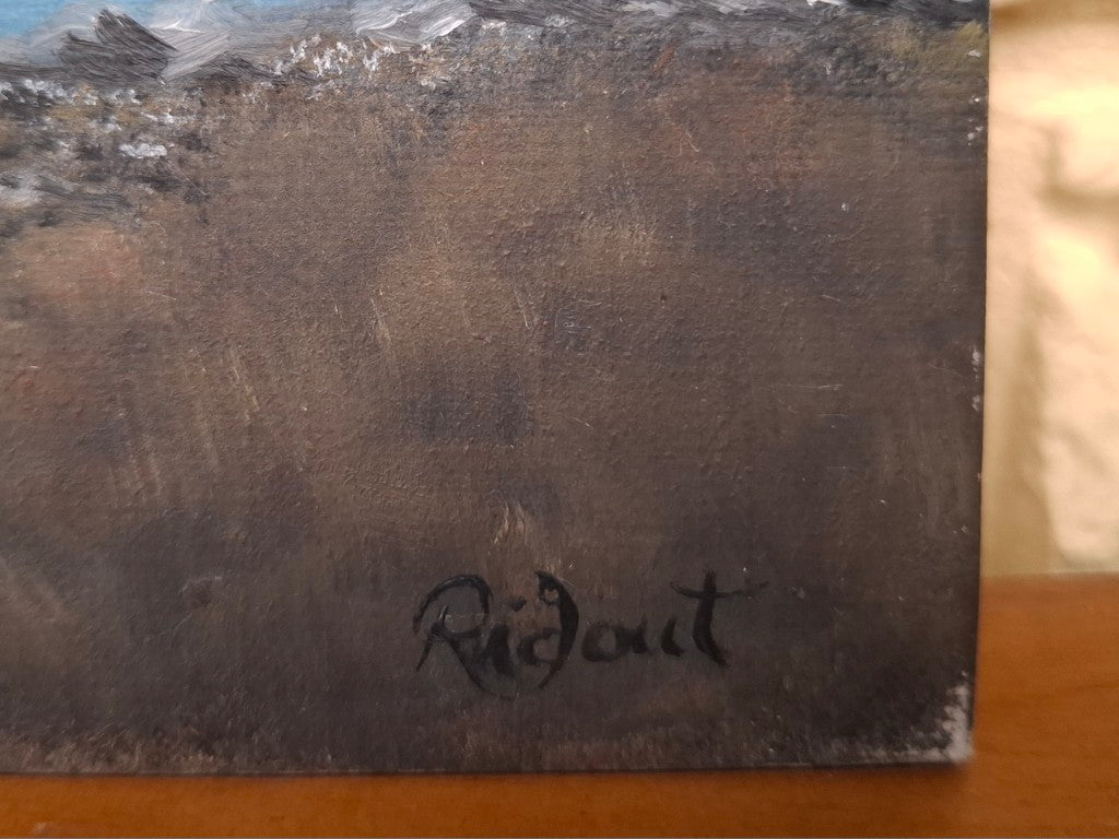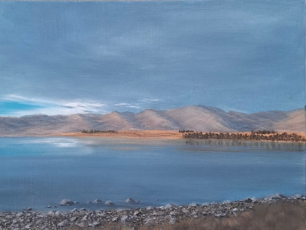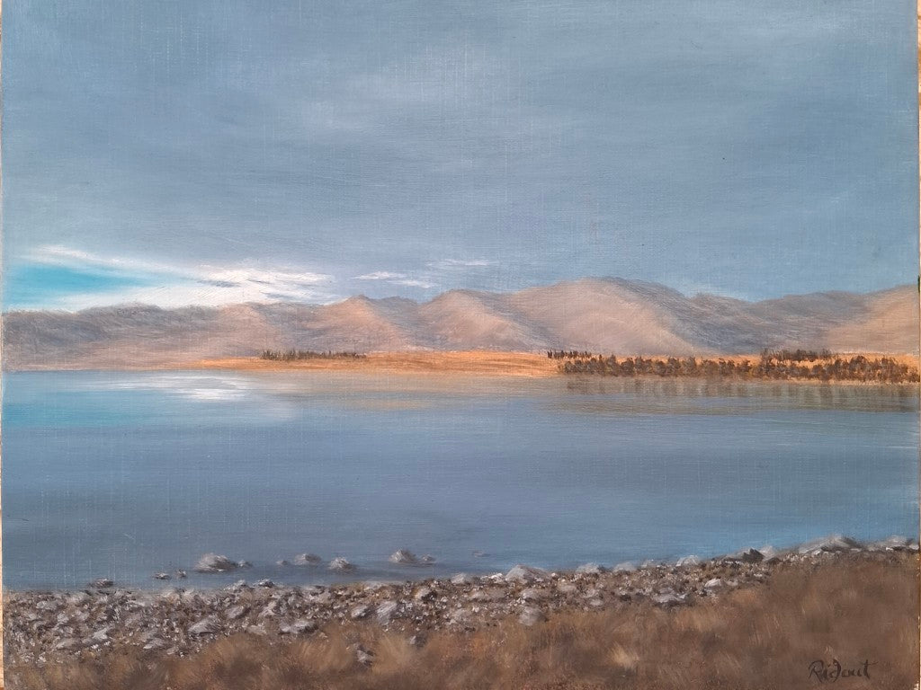 Capture the enchanting mood of Lake Tekapo with this playful painting signed by Ridout. The artwork brings the lake’s serene beauty and moody skies to life, perfect for adding a splash of charm and character to your space. Let this piece whisk you away to New Zealand’s stunning landscape every time you glance its way. There are a few minor indents on this piece but it doesn't take away from the beauty of the painting.