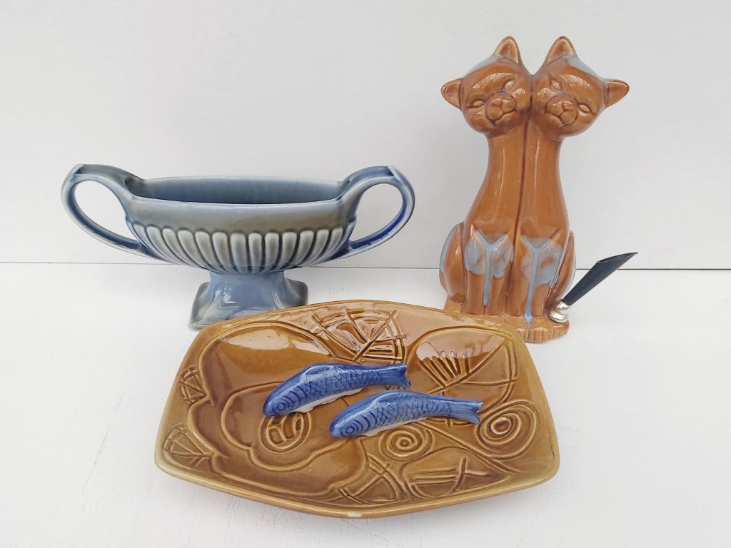 Add some quirky charm to your your home with this Pair of Blue Ceramic Fish! Though technically chopstick holders, they make for beautiful decor. In excellent condition, they make a perfect unique gift!