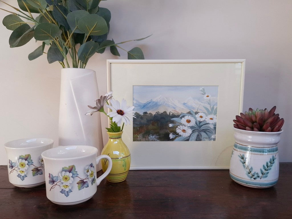These delightful Crown Lynn Blue Hazelwood cups, marked made in New Zealand on the base, are a charming vintage find. With just a hint of light crazing, they’re in great condition and perfect for enjoying your favorite coffee. Small but full of character, these wee cups add a playful touch to any coffee break. Price is for the pair.