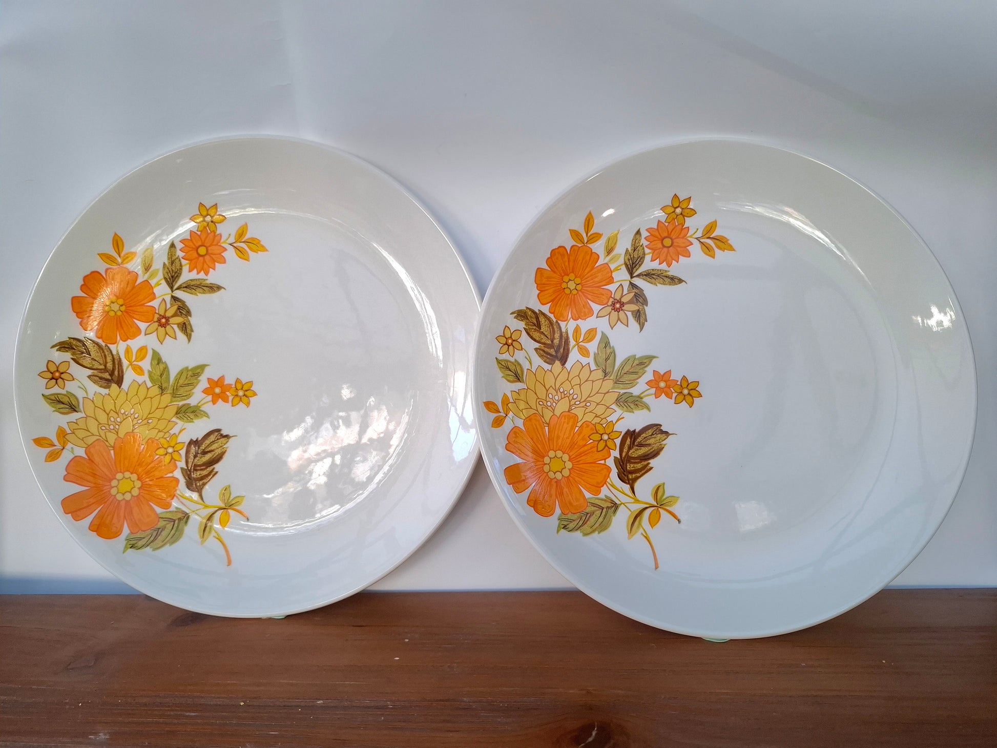 Groovy and colorful Crown Lynn Fragrance dinner plates. In excellent vintage condition with no chips or cracks. Price is for the pair.
