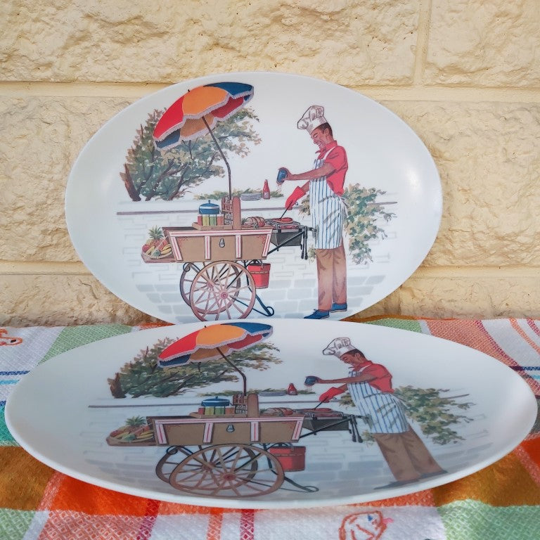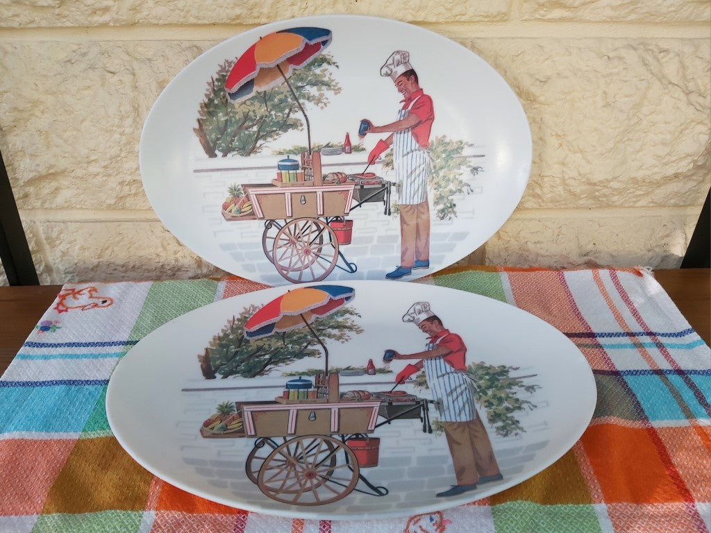 Pair of Vintage Oval BBQ Themed Ornamin Melamine Plates