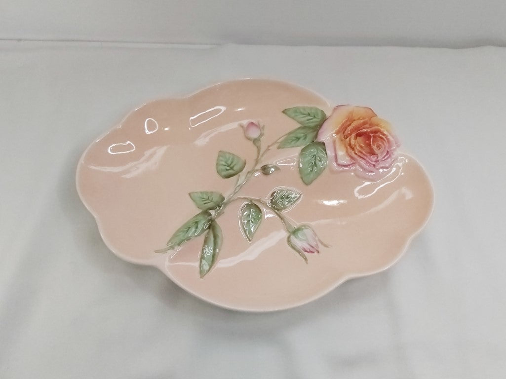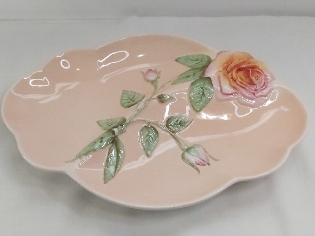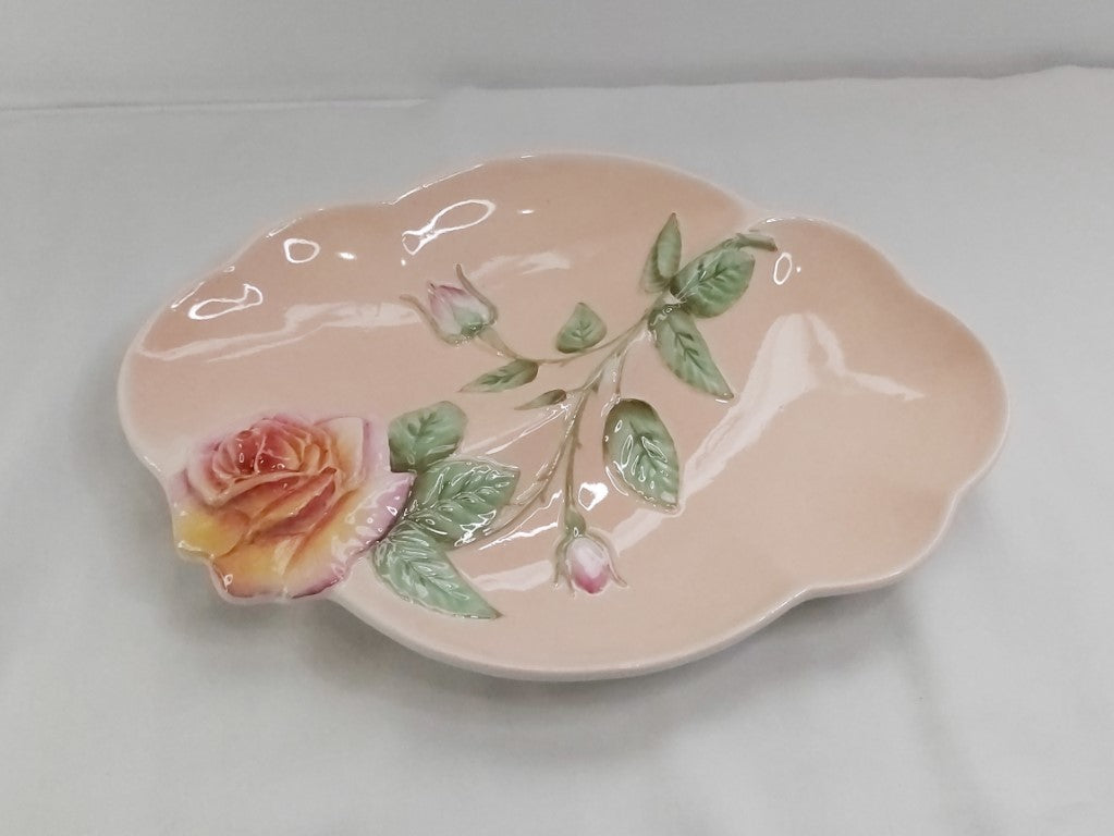 This vintage piece has the most beautiful warm pinks in the rose with a blush of yellow, and elegant fresh sage green leaves. The dish is a warm but very soft pink colour and it is in remarkably good condition for its age. There is some minor crazing in the glaze with a hairline glaze crack on the back that does not go through the ceramic. See photos. This may be my favourite piece so far!