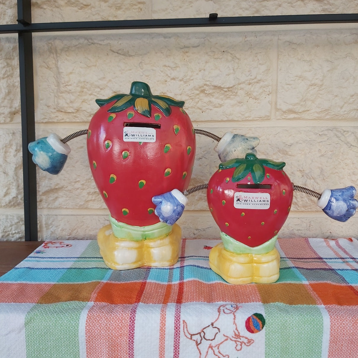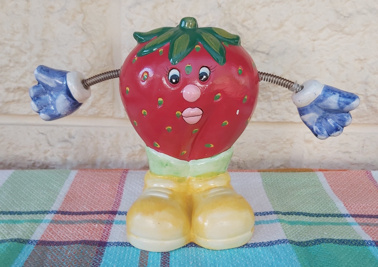 Save up for a sweet treat with this playful Large Anthropomorphic Strawberry Money Box! In great condition with no chips or cracks and complete with a stopper, this fun and quirky kitsch piece will bring a smile to your face every time you use it. Perfect for any fruit lover or collector.