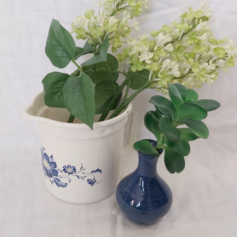 This little vase is perfect for small posies, and it's beautiful denim blue glaze adds a touch of charm to any room. Handcrafted and marked on the base with DY, this piece would look great in any type of interior, from modern to cozy cottage style. In excellent condition, with no chips or cracks, this vase makes a fabulous gift option!