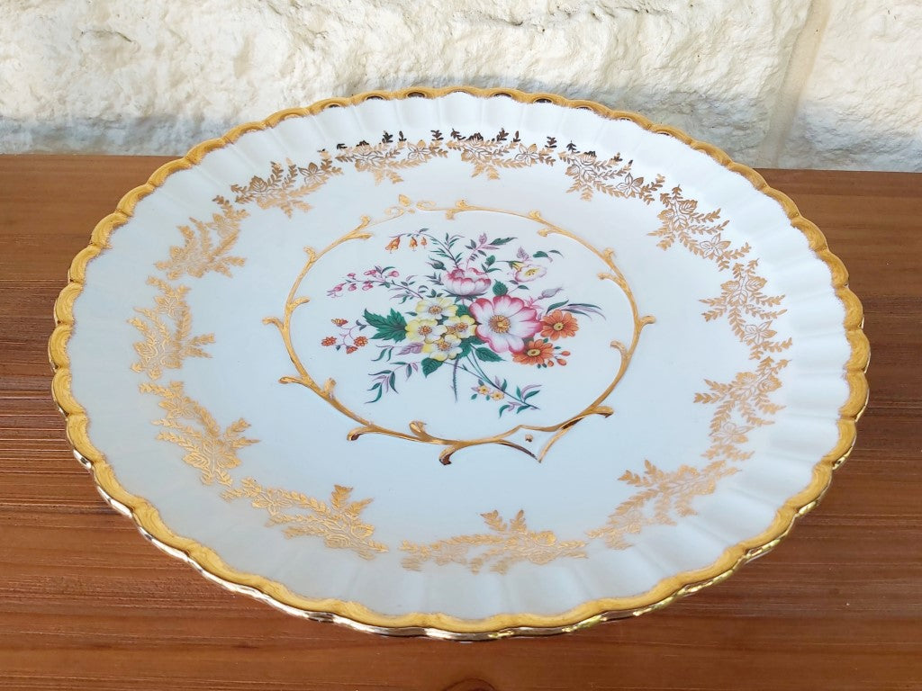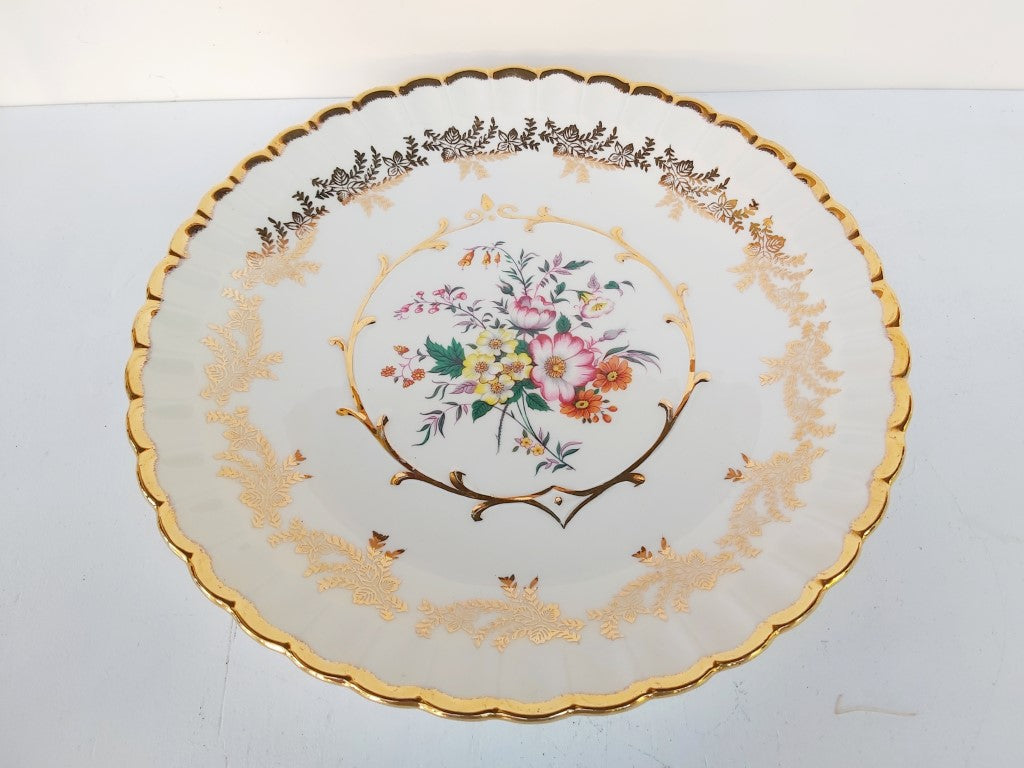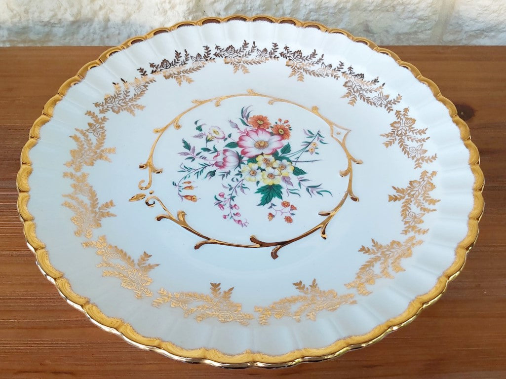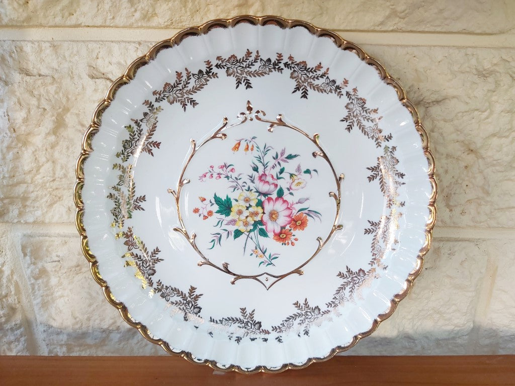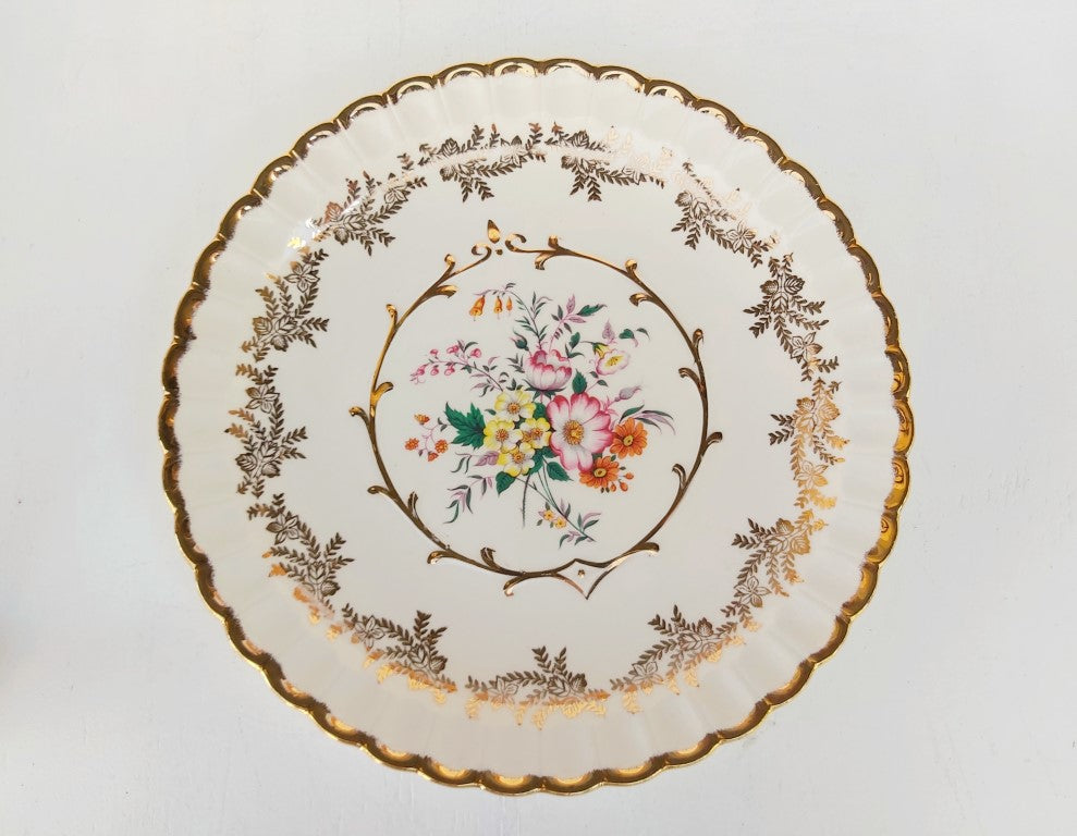 Stunning Vintage Wood & Sons Floral Plate with Gold Rim