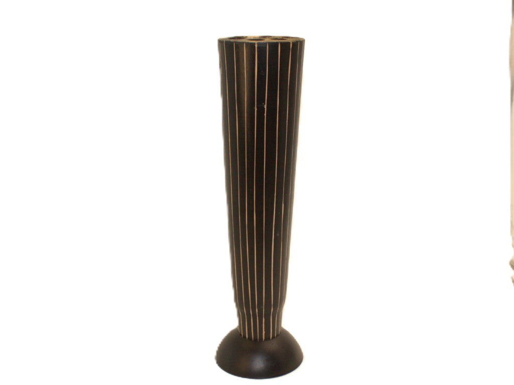 Tall Rustic Carved Wood Vase