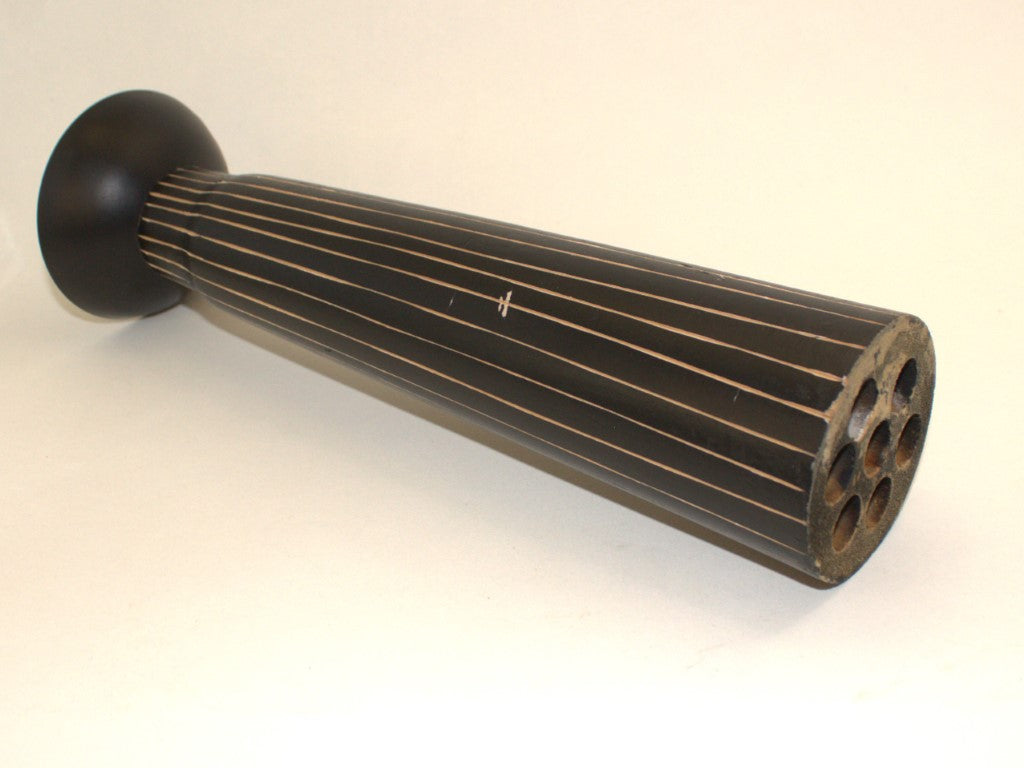 Really cool carved in painted wood vase with built in flower frog to hold the stems. Best for dried flowers, grasses, leaves as its raw wood inside.