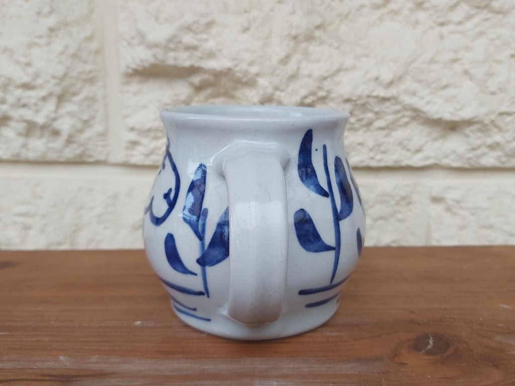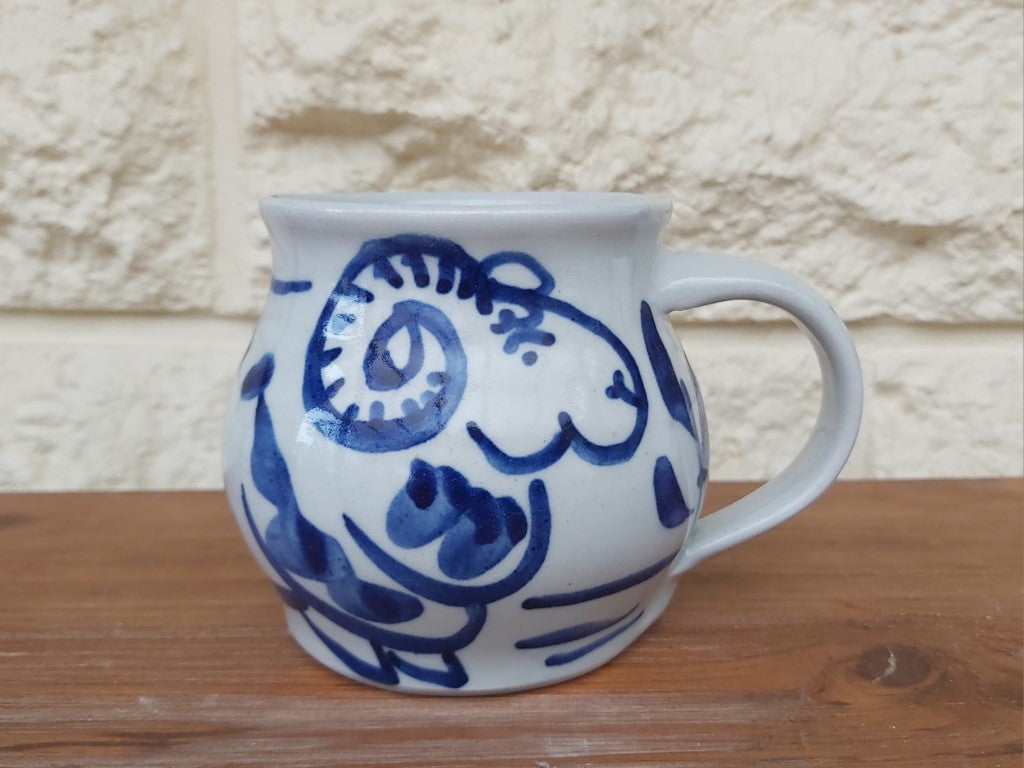 Add some quirky charm to your morning routine with this Blue & White Ram Studio Pottery Mug. This handpainted mug features a playful ram design in classic blue and white colors, making it the perfect way to start your day with a smile. Embrace the whimsy and grab yours today! In excellent condition so would also make a great gift.