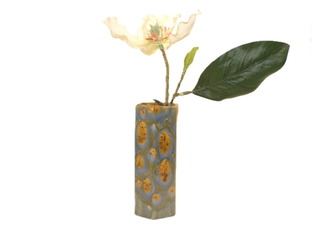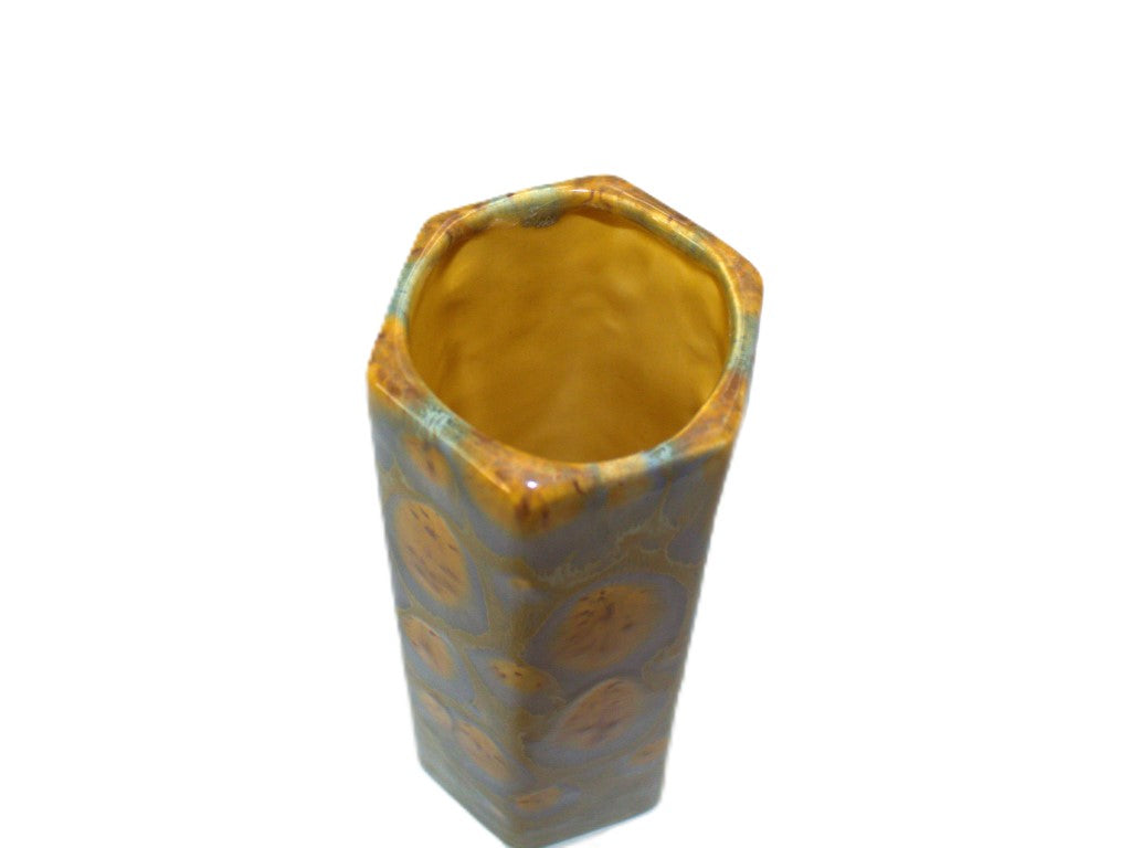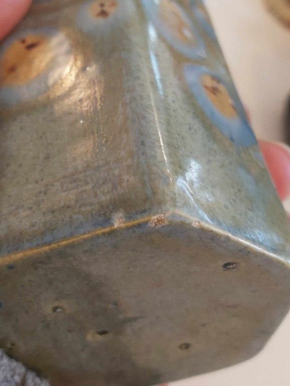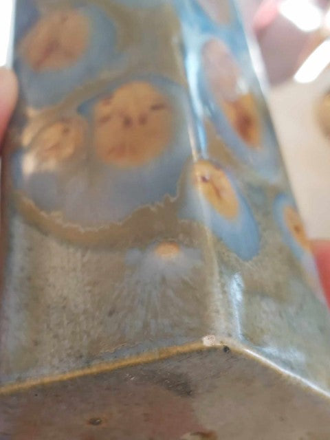 This vase is so unique with a stunning glaze in blues, greens and ambers. Overall in great condition, just very minor chipping on the base (like tiny).
