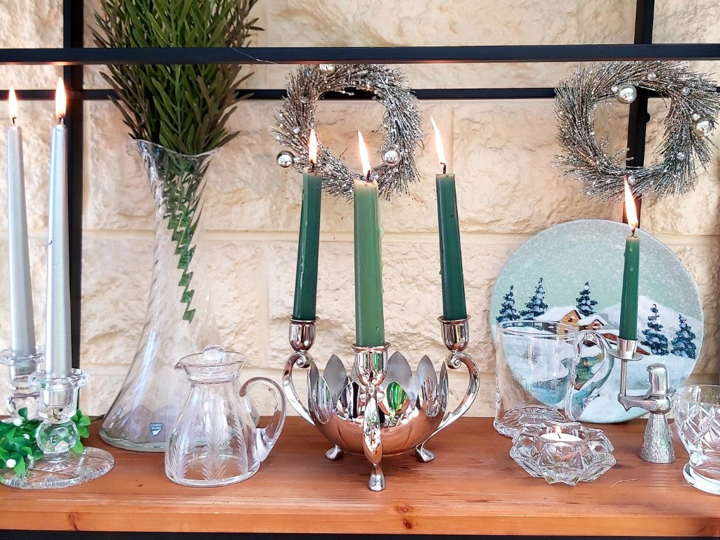 This vintage silver-plated Lotus Bowl Candle Holder is in excellent condition. It even has its original flower frog. Perfect for adding a touch of elegance to any mantel or table as a centerpiece.