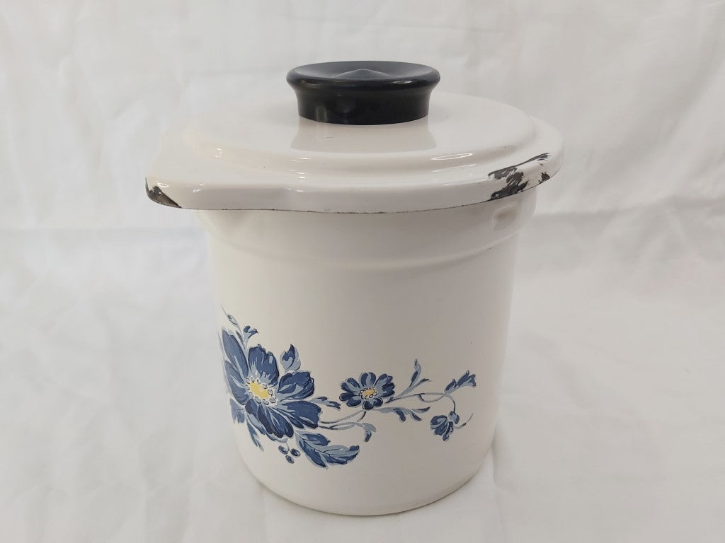I have not been able to definitively establish what exactly this was used for, however it contains a very fine sieve and has a pouring spout, so I wonder if it was a dairy strainer of some kind. It has some wear appropriate for its age, but otherwise is in excellent condition. This is a beautiful decor piece and could also be used as a vase.