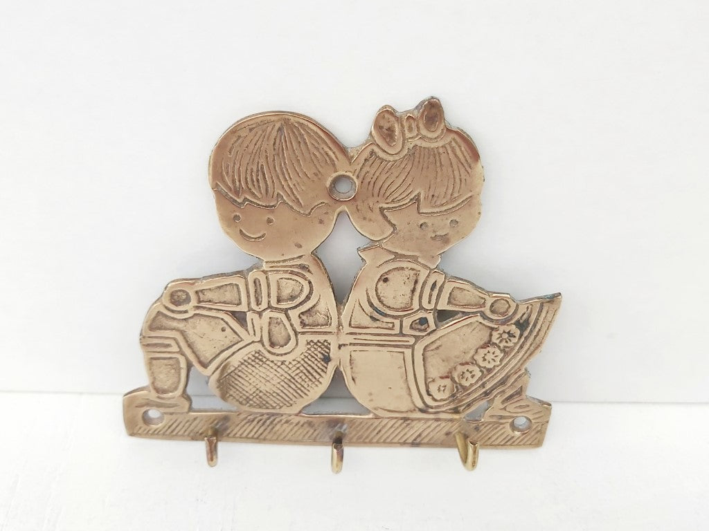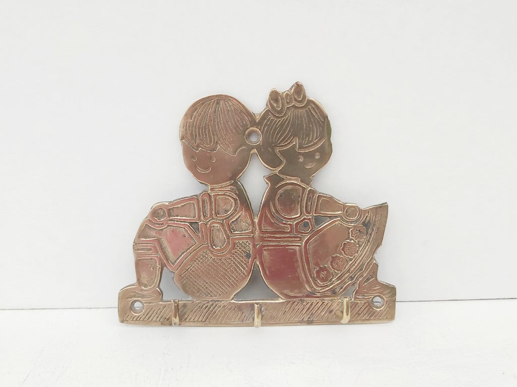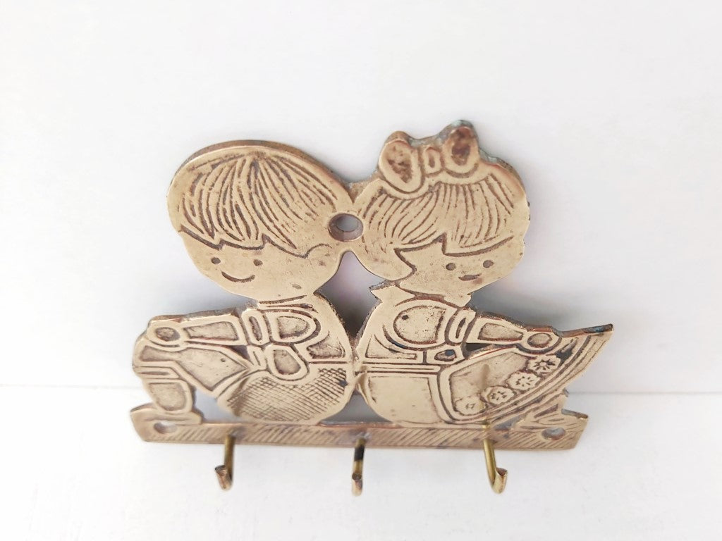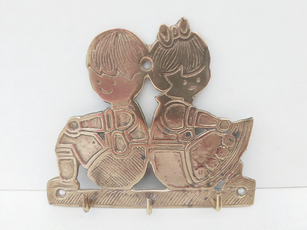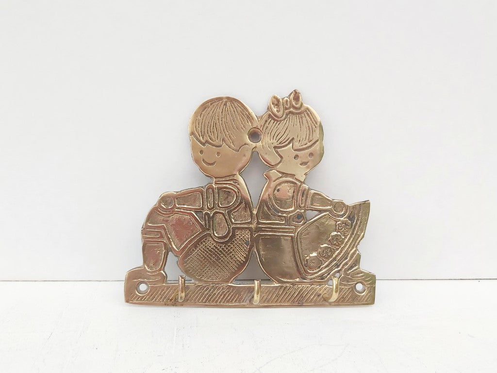 This Vintage Girl & Boy Brass Key Holder is a charming addition to any cottagecore aesthetic. The brass hooks are perfect for holding your keys or even small trinkets. With its cute girl and boy design, this key holder adds a touch of nostalgia to your home decor while keeping your items organized.