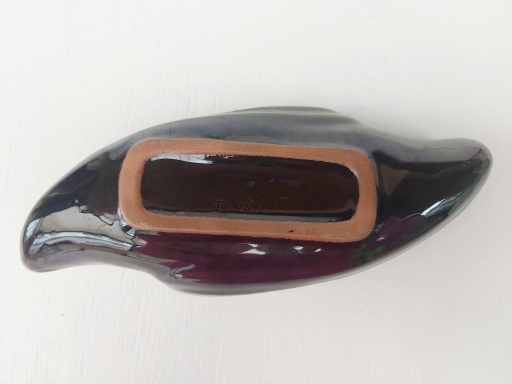 Vintage MCM Japanese Brown Drip Glaze Ikebana Planter
